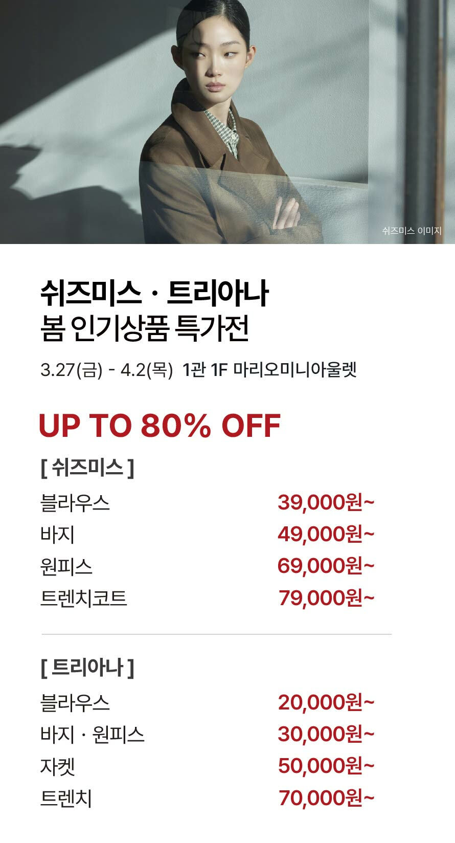 [쉬즈미스·트리아나] 봄 인기상품 특가전 (2026-03-27 ~ 2026-04-02)