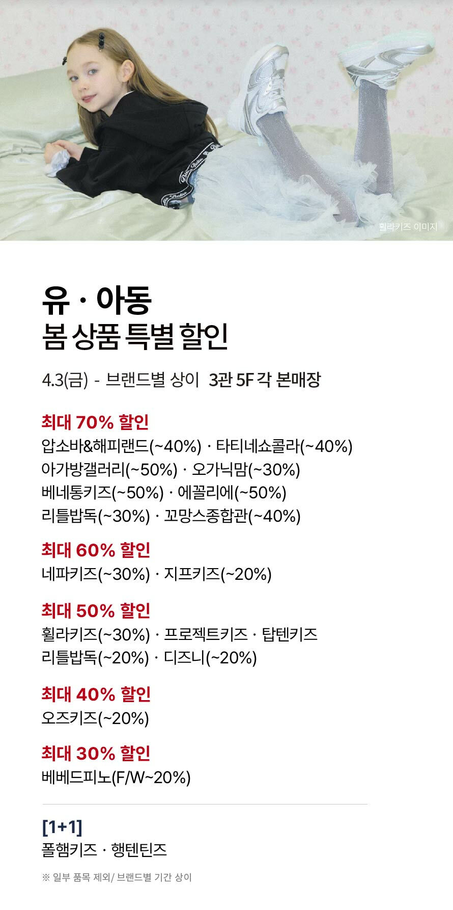 [유·아동] 봄 상품 특별 할인 (2026-04-03 ~ 각 브랜드 별 기간 상이)