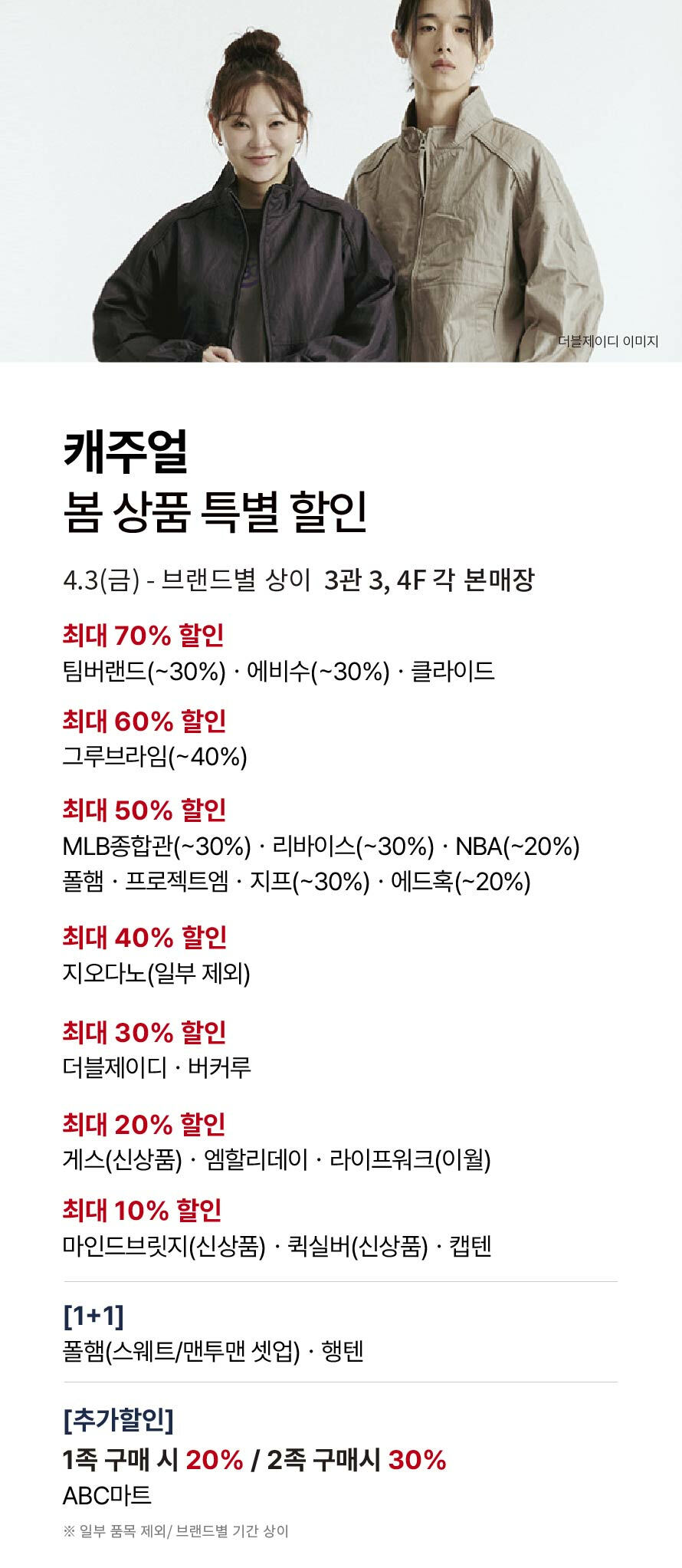 [캐주얼] 봄 상품 특별 할인 (2026-04-03 ~ 각 브랜드 별 기간 상이)