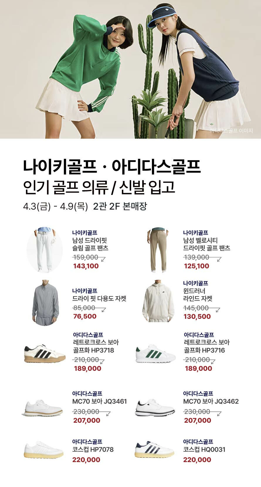 [나이키골프·아디다스골프] 인기 골프의류/신발 입고 (2026-04-03 ~ 2026-04-09)