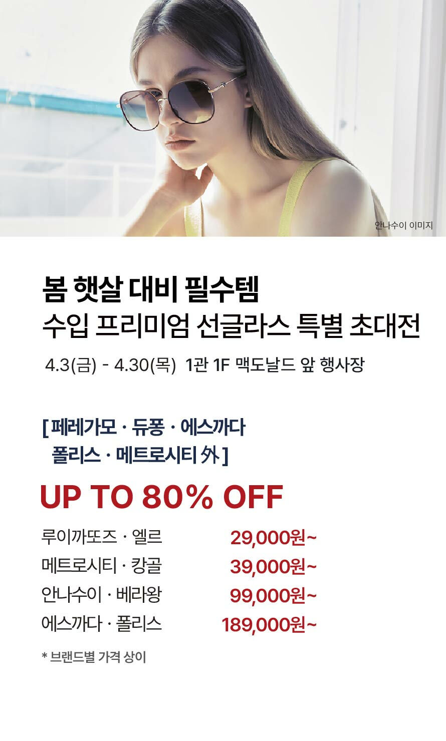 [봄 햇살 대비 필수템] 수입 프리미엄 선글라스 특별 초대전 (2026-04-03 ~ 2026-04-30)