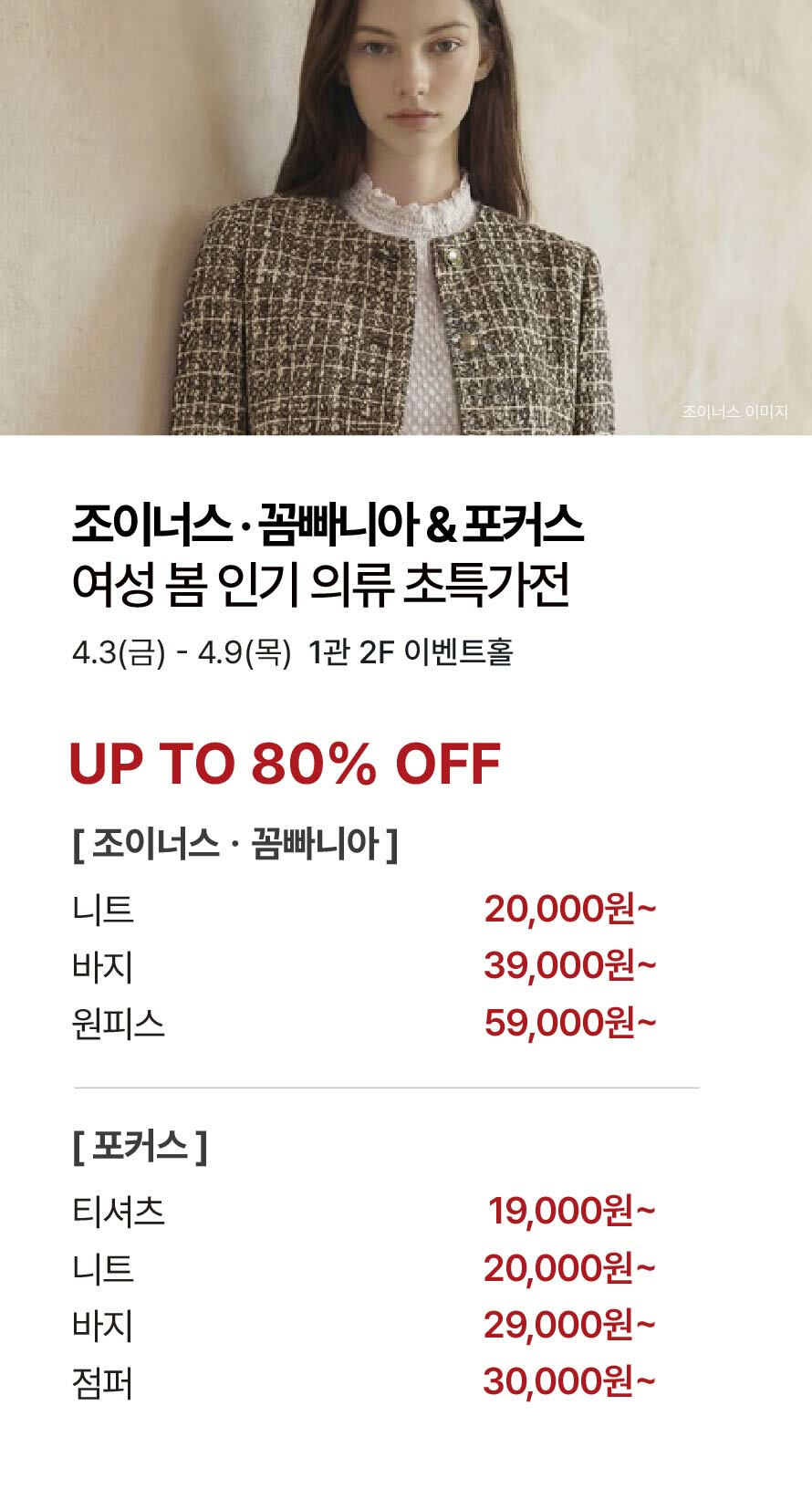 [조이너스·꼼빠니아 & 포커스] 여성 봄 인기의류 초특가전 (2026-04-03 ~ 2026-04-09)
