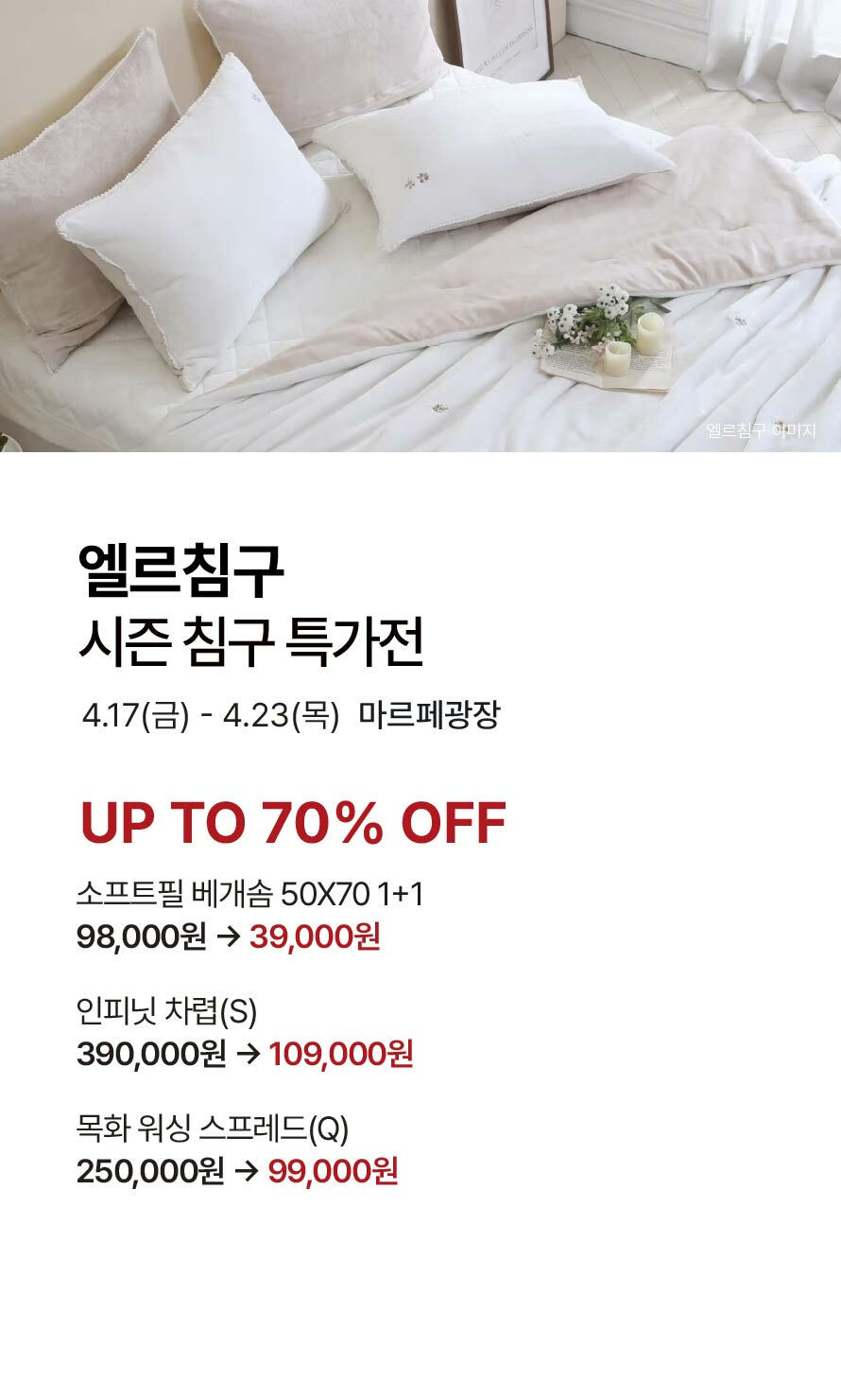[엘르침구] 시즌 침구 특가전 (2026-04-17 ~ 2026-04-23)