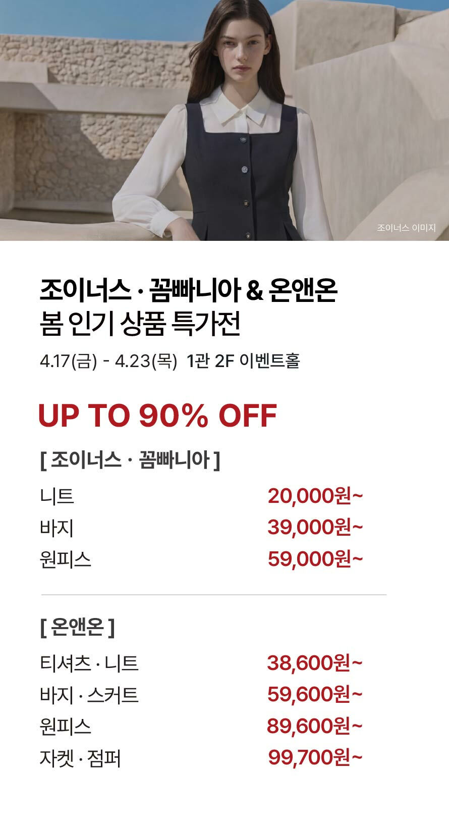 [조이너스·꼼빠니아 & 온앤온] 봄 인기상품 특가전 (2026-04-17 ~ 2026-04-23)