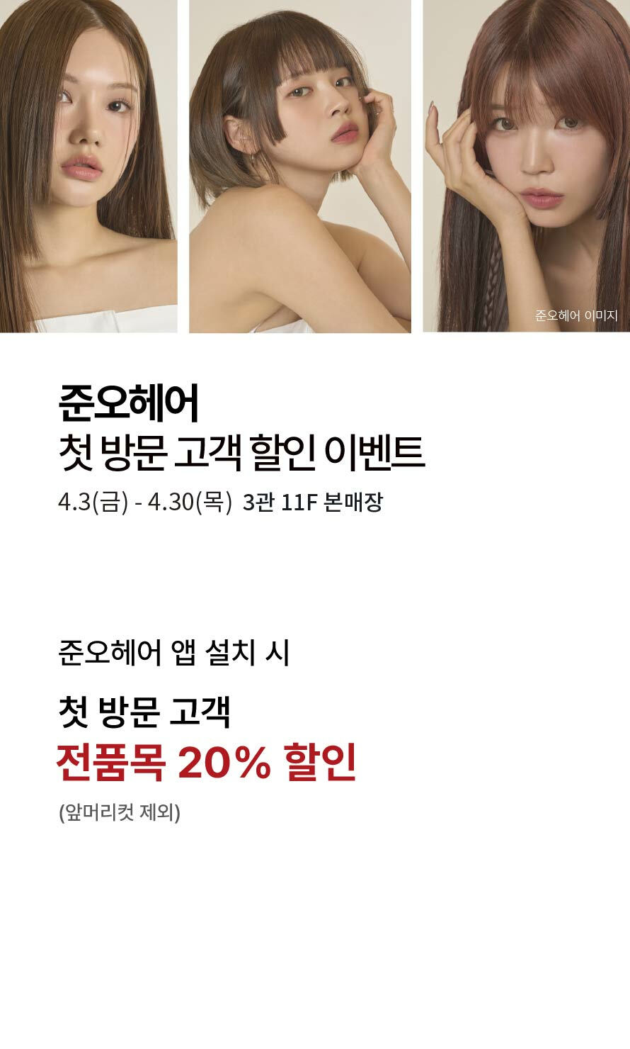 [준오헤어] 첫 방문 고객 할인 이벤트 (2026-04-03 ~ 2026-04-30)